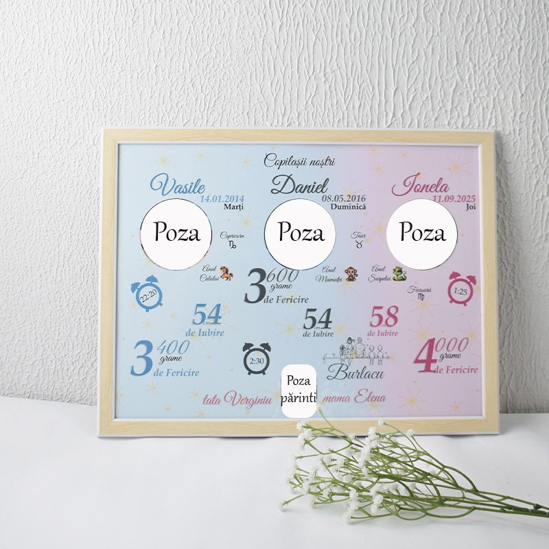O metrică de familie unică, creată special pentru părinții cu trei copii, cu un design armonios și emoționant.